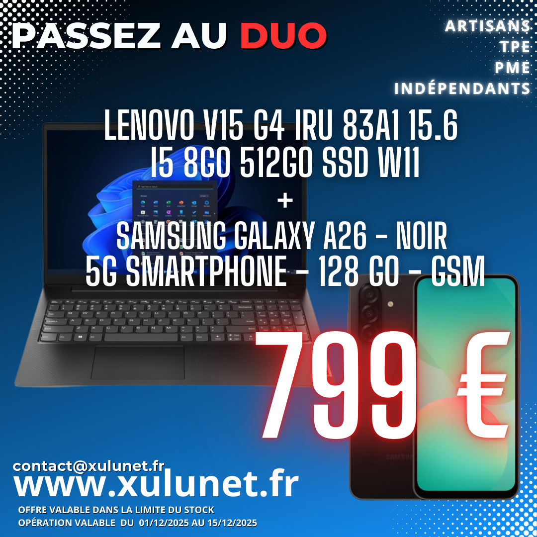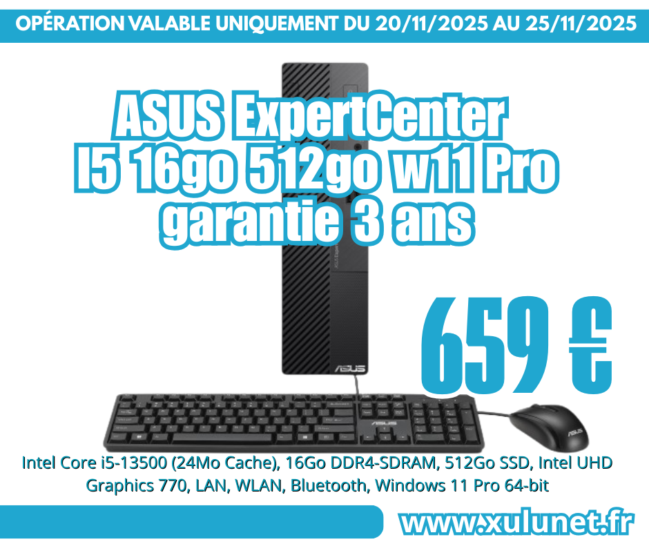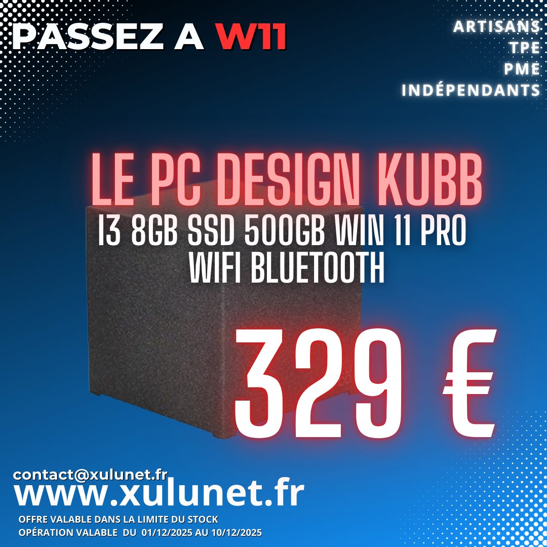 Mini PC avec processeur, capacité mémoire et disque et taille de moniteur variable selon les besoins.