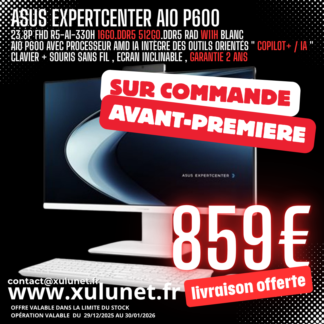 Mini PC avec processeur, capacité mémoire et disque et taille de moniteur variable selon les besoins.